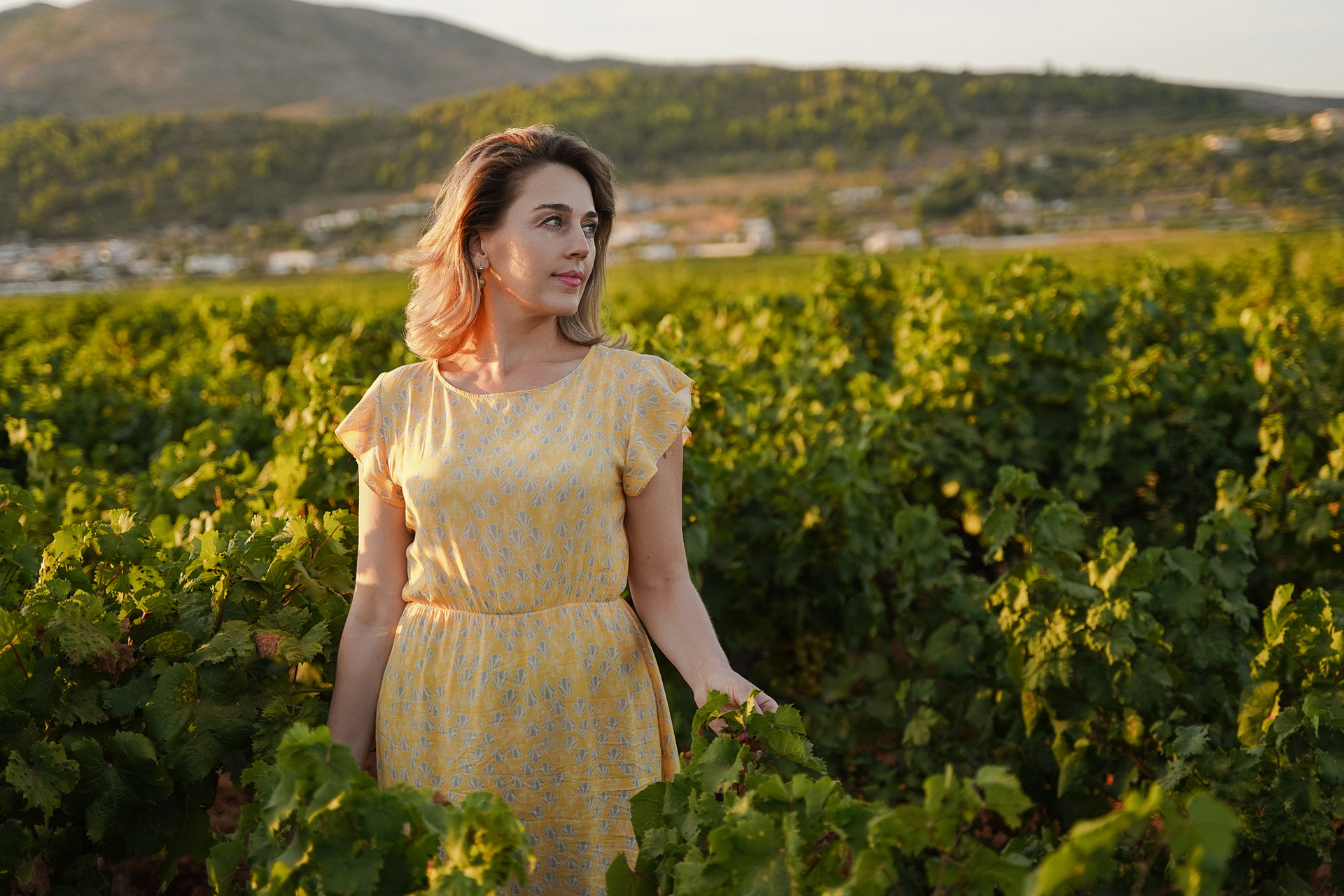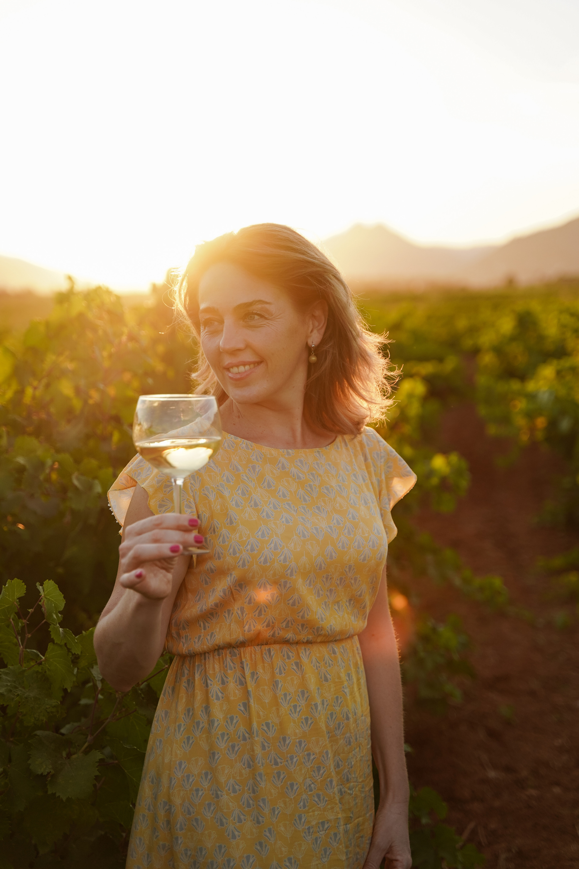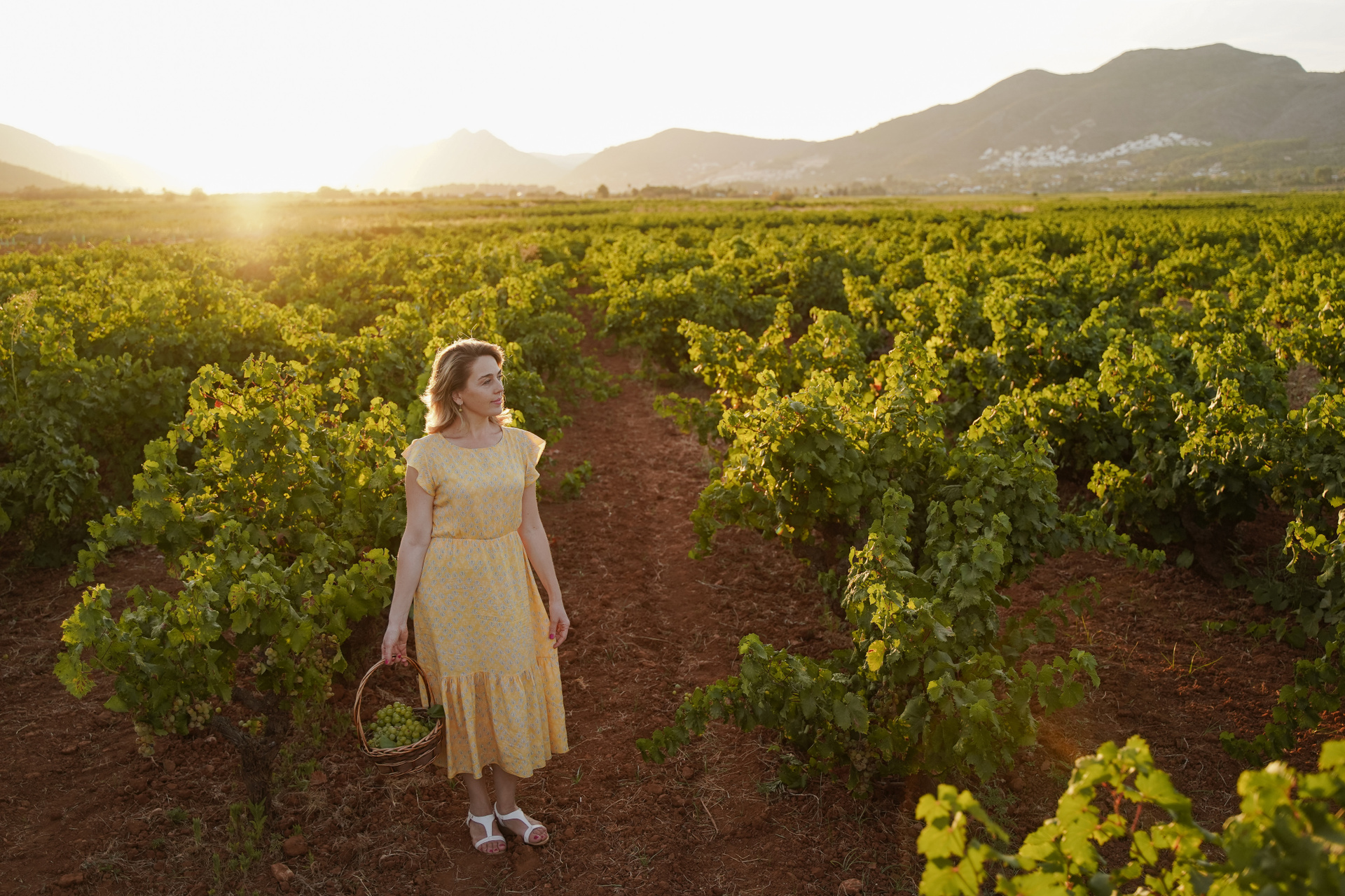 En vestido rojo al atardecer
