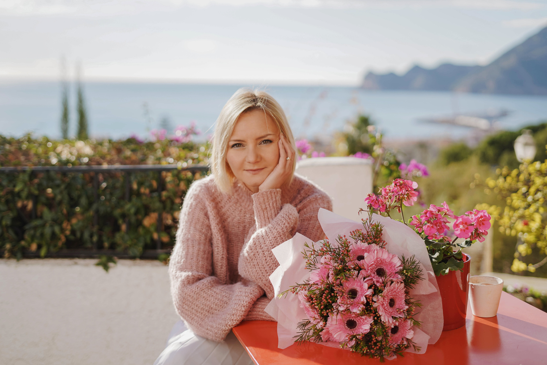 В красном платье на закате